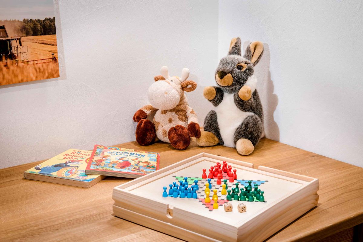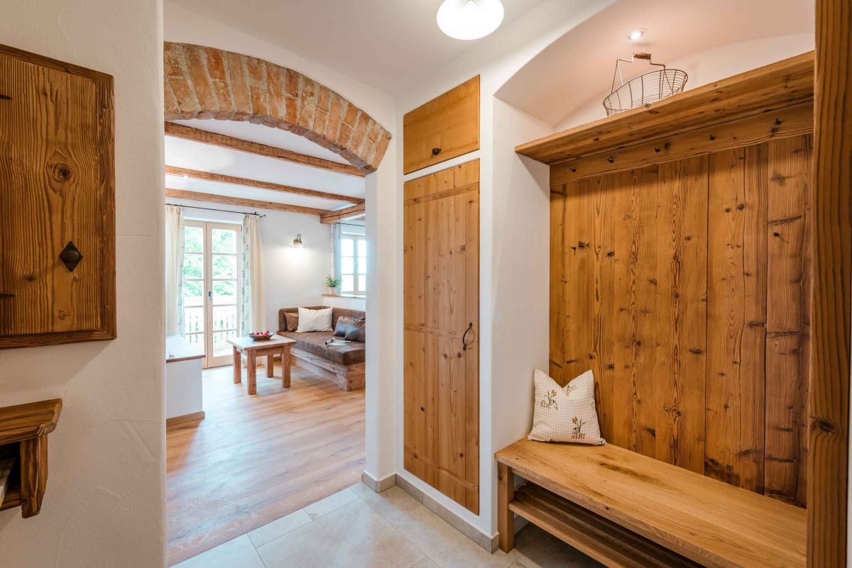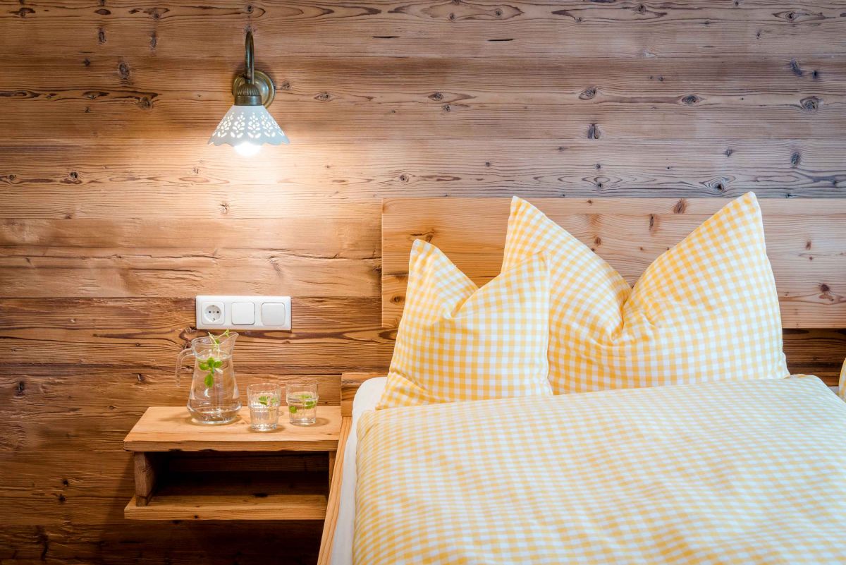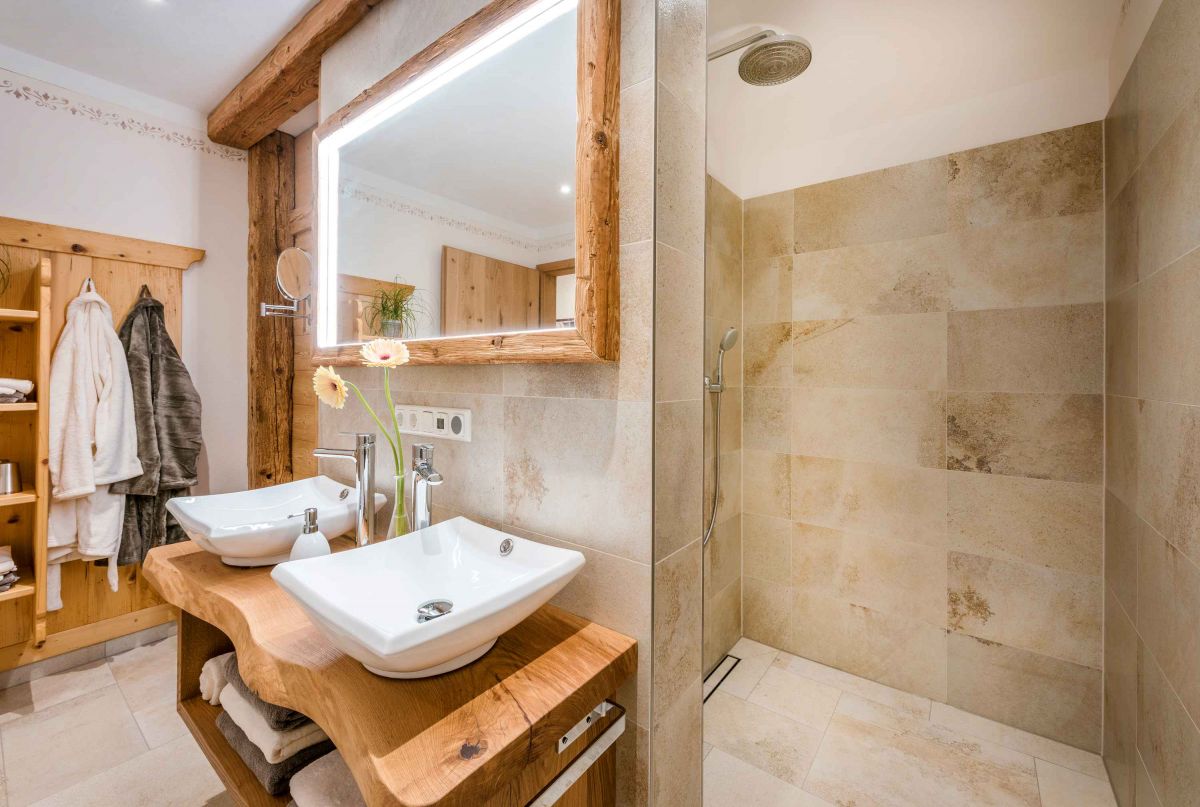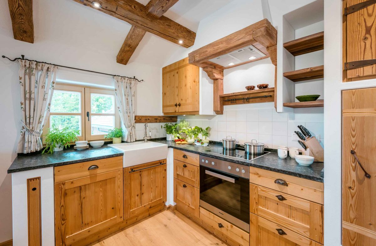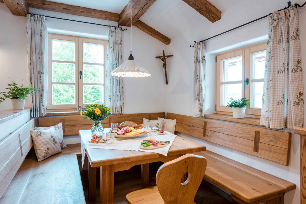 Die 5-Sterne-Luxus-Ferienwohnung "Getreidekasten" bietet mit einer Größe von etwa 80 qm reichlich Platz für bis zu 4 Personen. Die gemütlich eingerichtete Ferienwohnung befindet sich im zweiten Stock des neu erbauten Bauernhauses, ist komfortabel mit einem Aufzug zu erreichen, und besitzt einen Ostbalkon. Sie verfügt über zwei getrennte Schlafzimmer: ein Elternschlafzimmer mit Doppelbett sowie ein Kinderzimmer mit Etagenbett (ein Zustellbett möglich). Die Küche wie auch die übrige Einrichtung wurde von Schreinern angefertigt. Details, Stoffe und Farben wurden von Bäuerin Evi liebevoll zum Wohlfühlen ausgewählt.