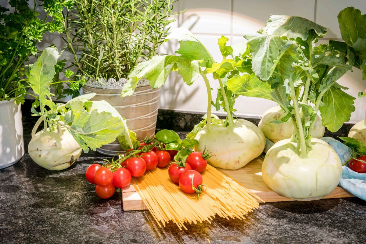 - komplett ausgestattete Küche mit E-Herd, Backofen, Kühlschrank mit Gefrierfach, Mikrowelle, Geschirrspüler, Kaffeemaschine, Wasserkocher, Eierkocher, Handrührgerät, Stabmixer und Toaster (mit Zugang zum Balkon)
