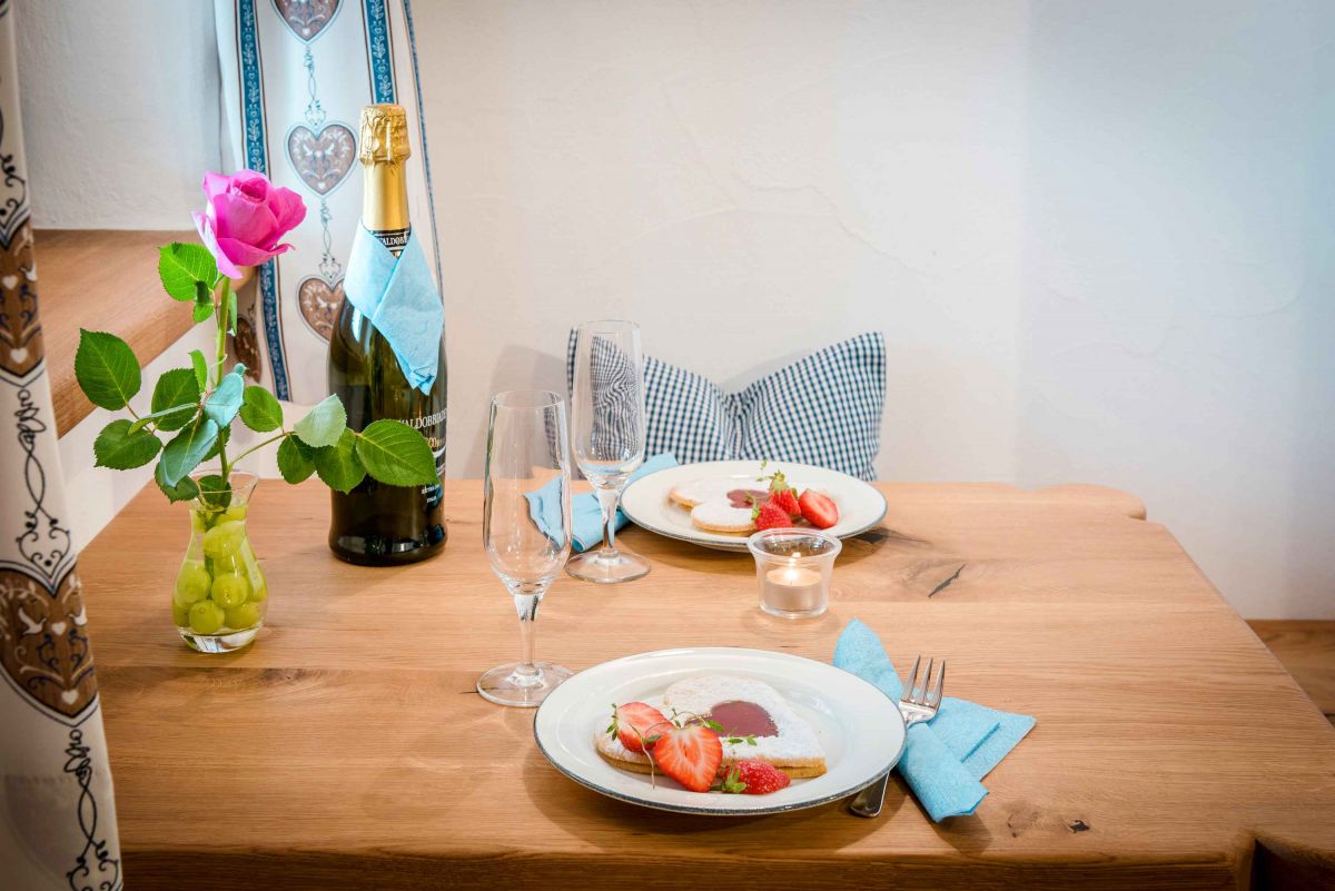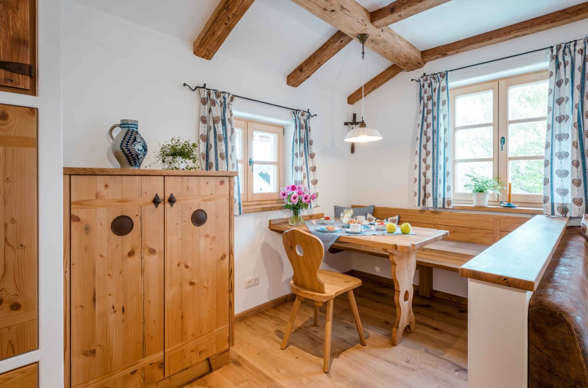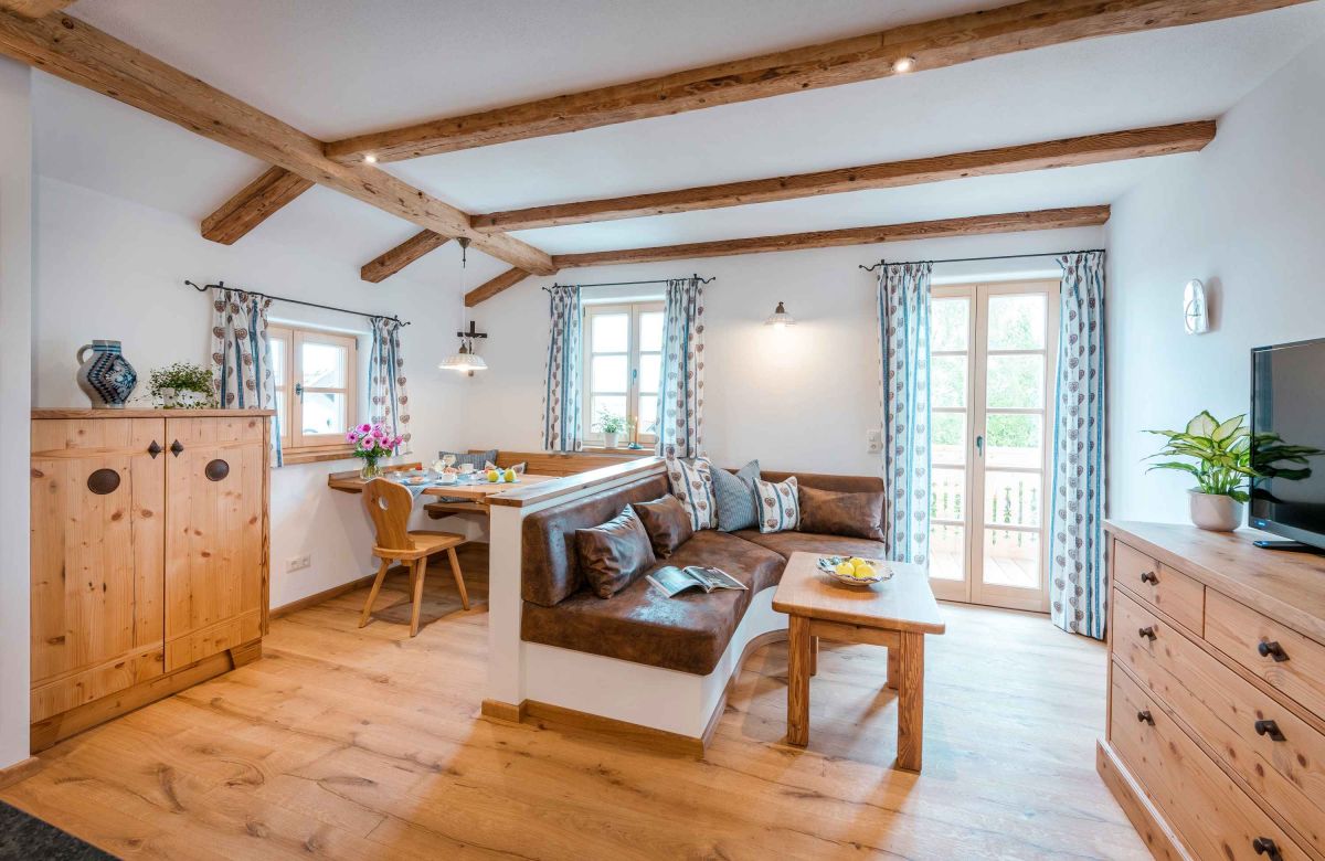 Die 5-Sterne-Luxus-Ferienwohnung "Schwalbennest" bietet mit einer Größe von etwa 45 qm reichlich Platz für bis zu 2 Personen. Die gemütlich eingerichtete Ferienwohnung befindet sich im zweiten Stock des neu erbauten Bauernhauses, ist komfortabel mit dem Lift zu erreichen, und besitzt einen Ostbalkon. Sie verfügt über ein Schlafzimmer mit Doppelbett. Die Küche wie auch die übrige Einrichtung wurde von Schreinern angefertigt. Details, Stoffe und Farben wurden von Bäuerin Evi liebevoll zum Wohlfühlen ausgewählt.