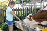 Bauernhoftiere hautnah erleben und kennen lernen, das bietet der Thomahof für Groß und Klein. Hier kann man mal schauen, wo die Milch herkommt, selbst eine Kuh melken, beim Füttern der Kälbchen helfen oder die Schafe und Ziegen auf die Weide bringen.