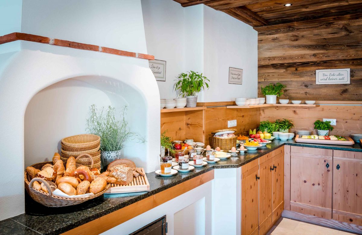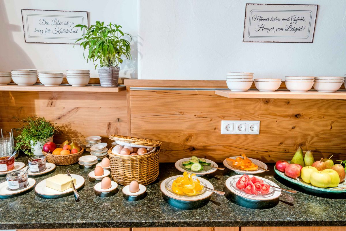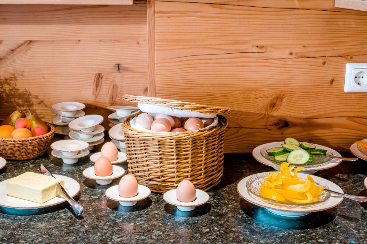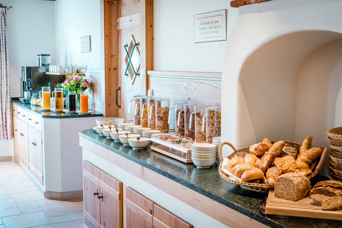 Was gibt es Schöneres, als richtig auszuschlafen und als Start in einen schönen Urlaubstag gemütlich zu frühstücken? Damit ihr das Frühstück ganz einfach genießen könnt, verwöhnen wir euch täglich mit einem Frühstücksbuffet mit hofeigenen und regionalen Produkten, das keine Wünsche offen lässt.