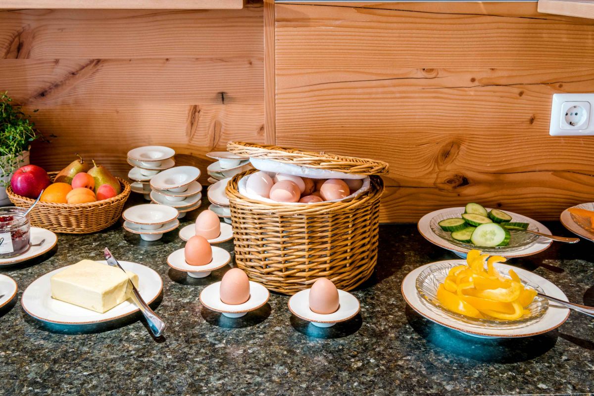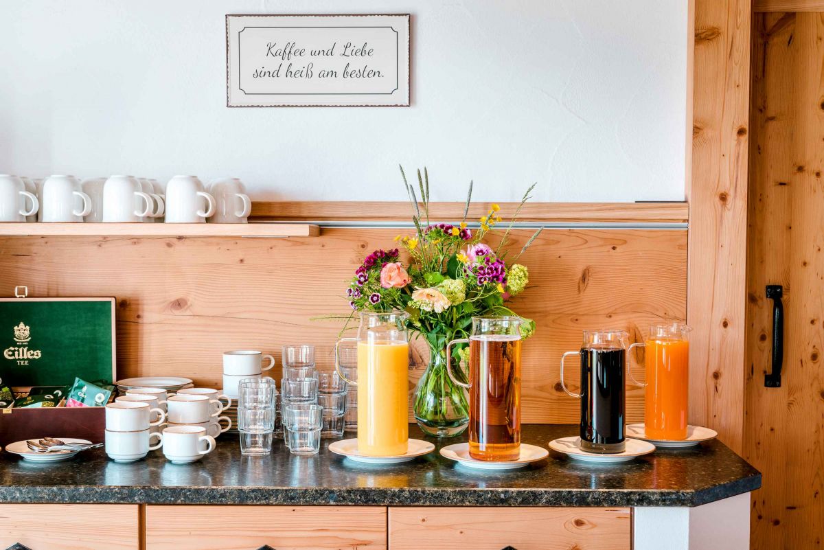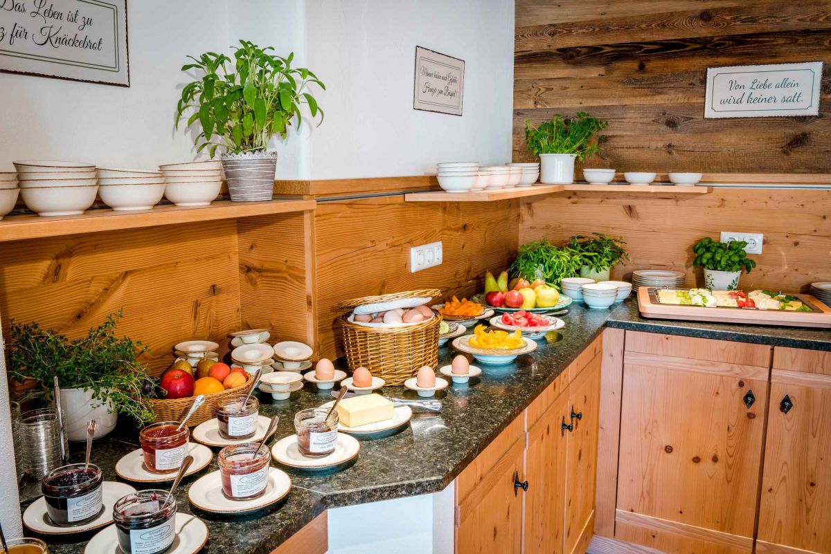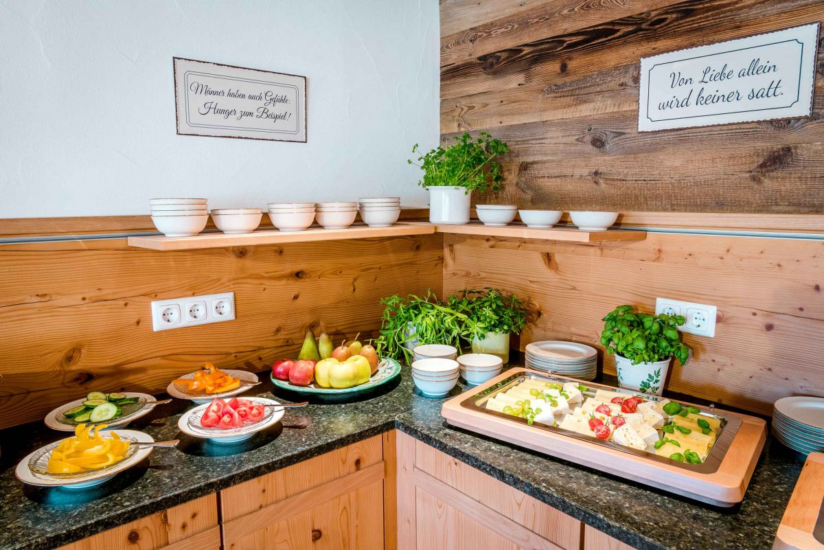 Was gibt es Schöneres, als richtig auszuschlafen und als Start in einen schönen Urlaubstag gemütlich zu frühstücken? Damit ihr das Frühstück ganz einfach genießen könnt, verwöhnen wir euch täglich mit einem Frühstücksbuffet mit hofeigenen und regionalen Produkten, das keine Wünsche offen lässt.